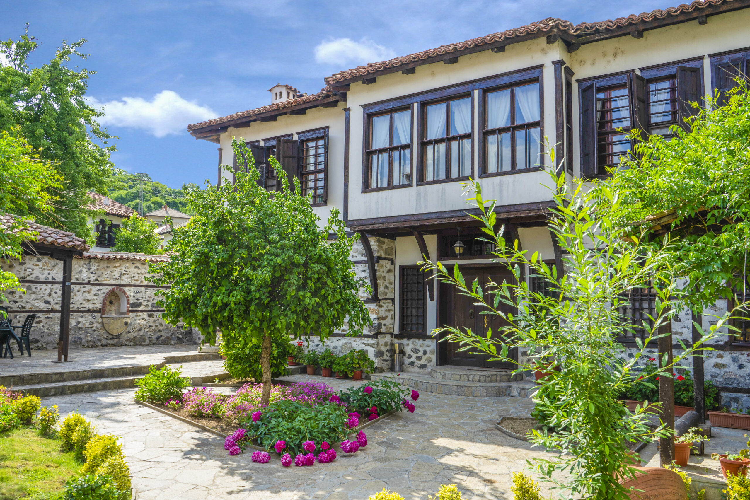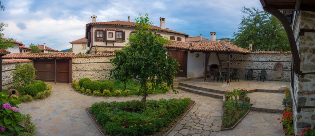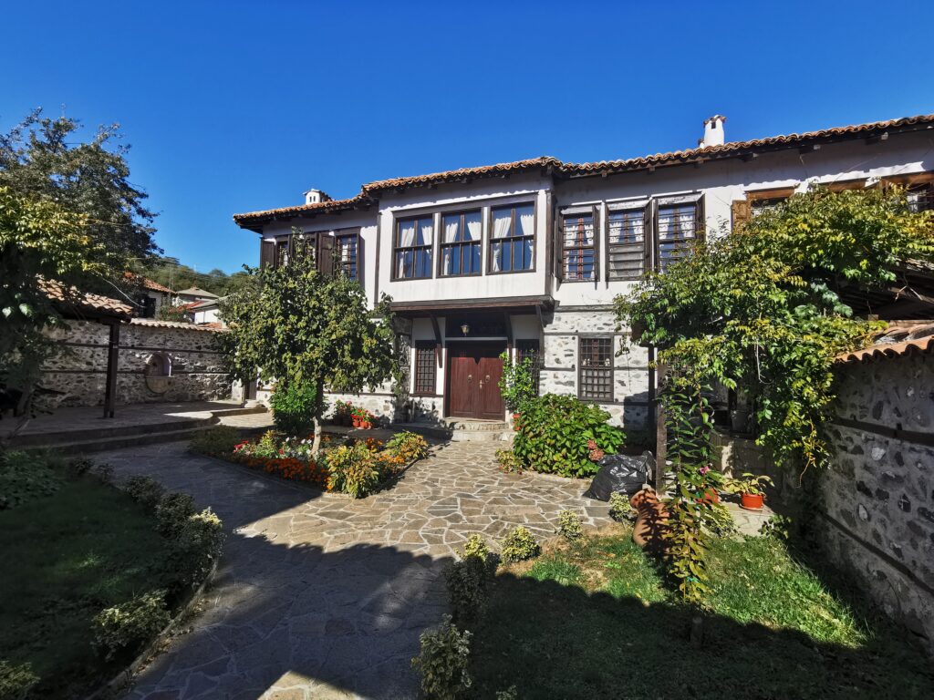 Къщата е паметник на културата и образец на уникалната златоградска архитектура. Разположена в сърцето на Етнографския комплекс и съчетаваща традиционен интериор със съвременни удобства, тя предлага 8 двойни стаи, оборудвани с кабелна телевизия, телефон, интернет-достъп, мини-бар, сейф и самостоятелен санитарен възел. На разположение на гостите е и просторен озеленен вътрешен двор с кът за отмора, камина и кладенец. Настаняване и регистрация – рецепцията на Етнографски комплекс /на 20 метра/. Закуската се сервира в ресторанта-винарна на Комплекса.